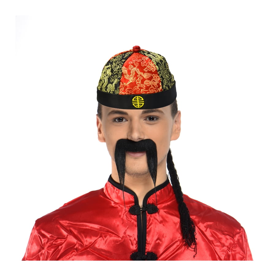 Coiffe de mandarin en tissu, avec longue tresse incluse.