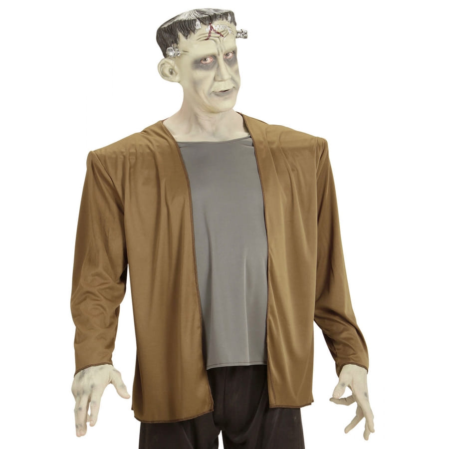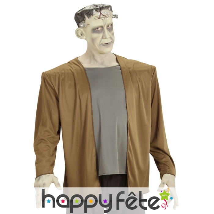 Le manteau de Frankenstein avec chemise et coiffe sont les pièces d'un déguisement destiné aux hommes.