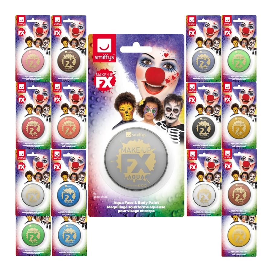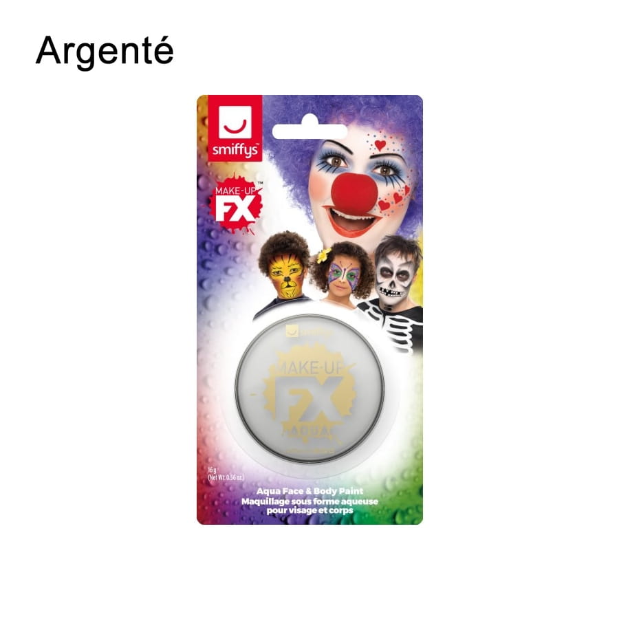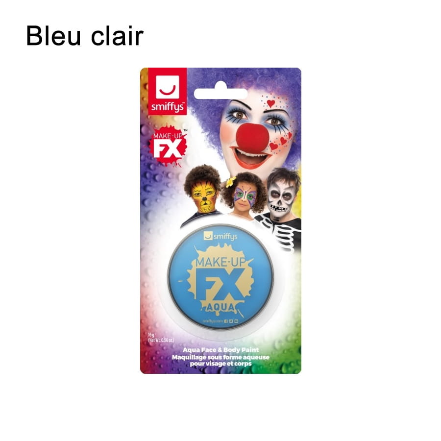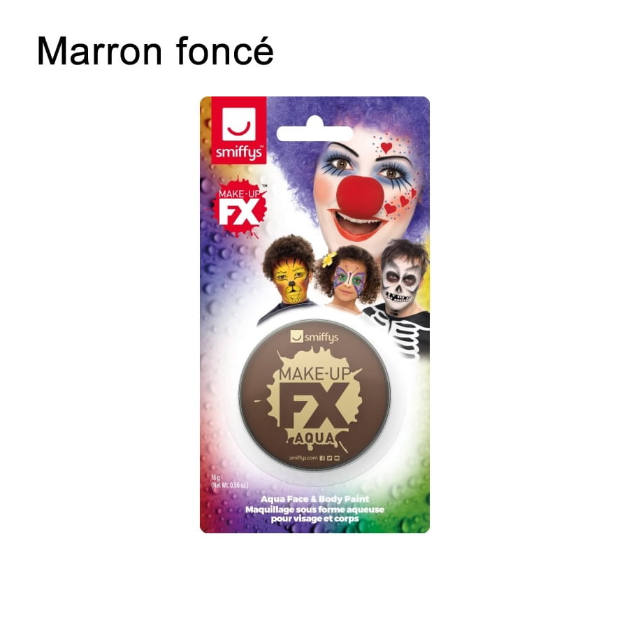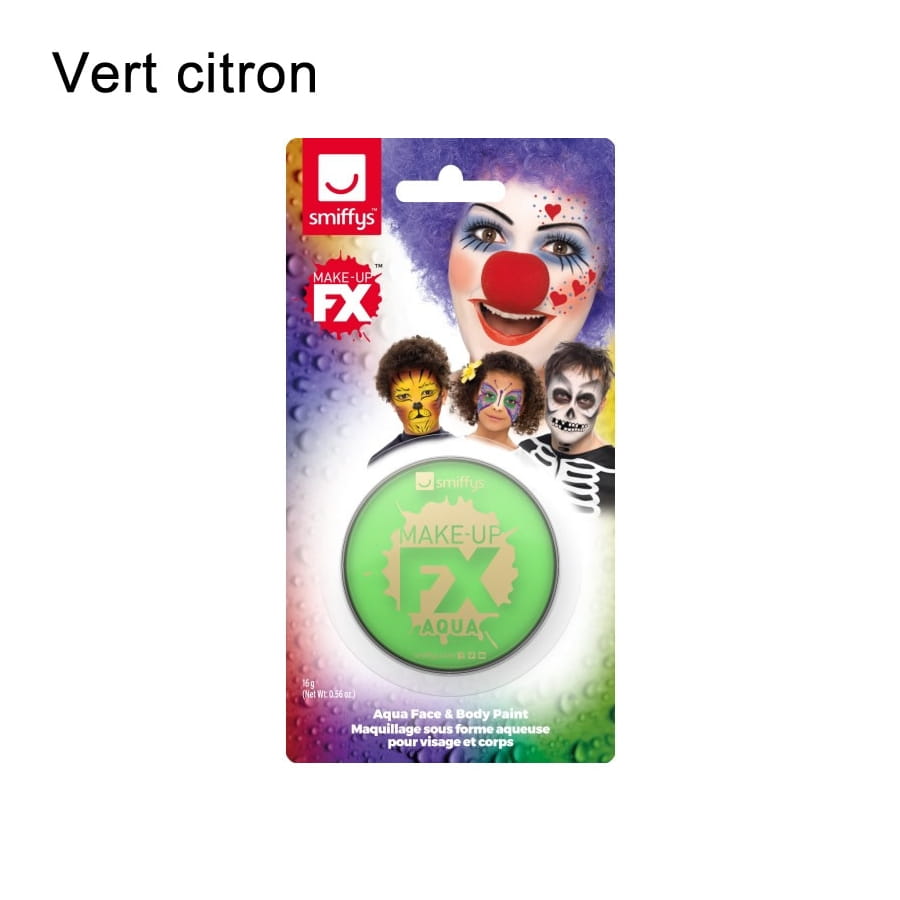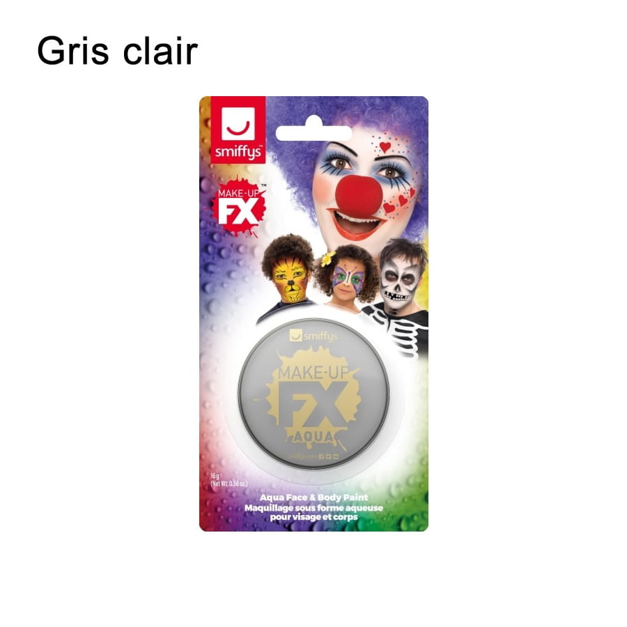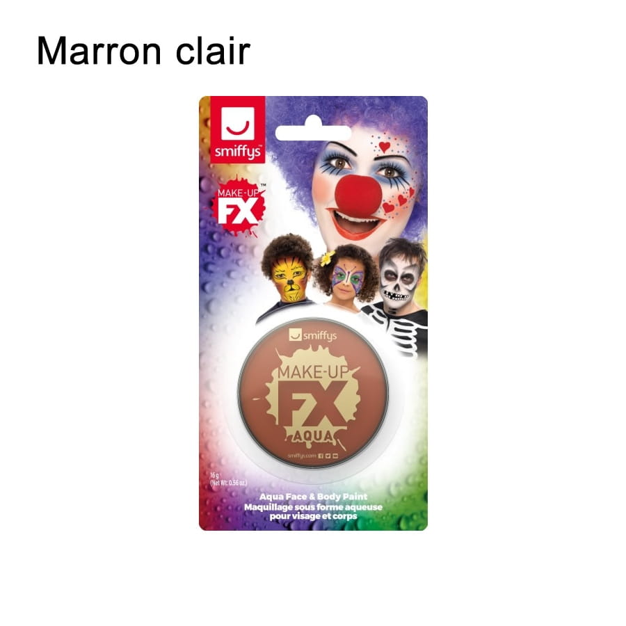 Vive le maquillage ! Donnez encore plus de vie à votre déguisement en utilisant du maquillage à l'eau de 16 ml, visage et corps. Facile à appliquer, ce produit cosmétique pour petits et grands vous est proposé en différents coloris : jaune, vert citron, vert, orange, marron clair, marron foncé, blanc, gris clair, noir, bleu roi, bleu clair, violet, rose, rouge, doré ou argenté.