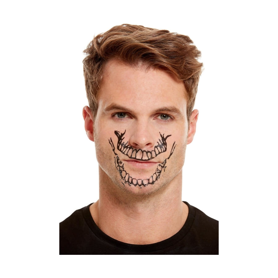 Il suffit de l'appliquer comme un tatouage temporaire pour obtenir deux parties noires d'un squelette de la bouche.