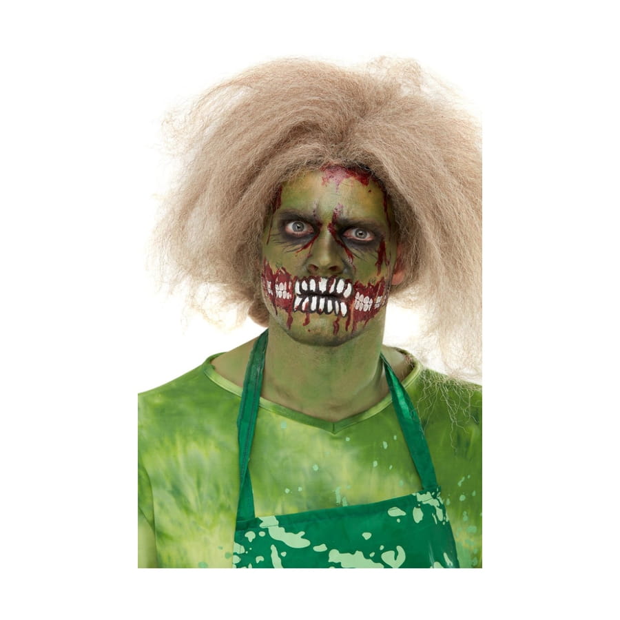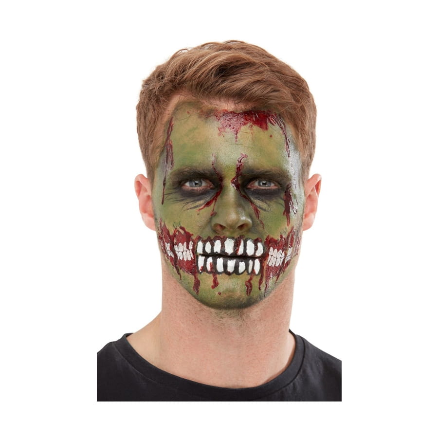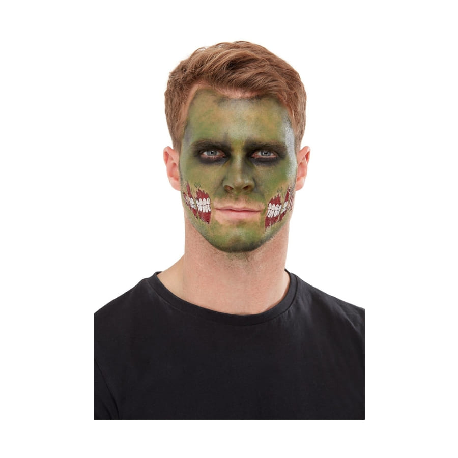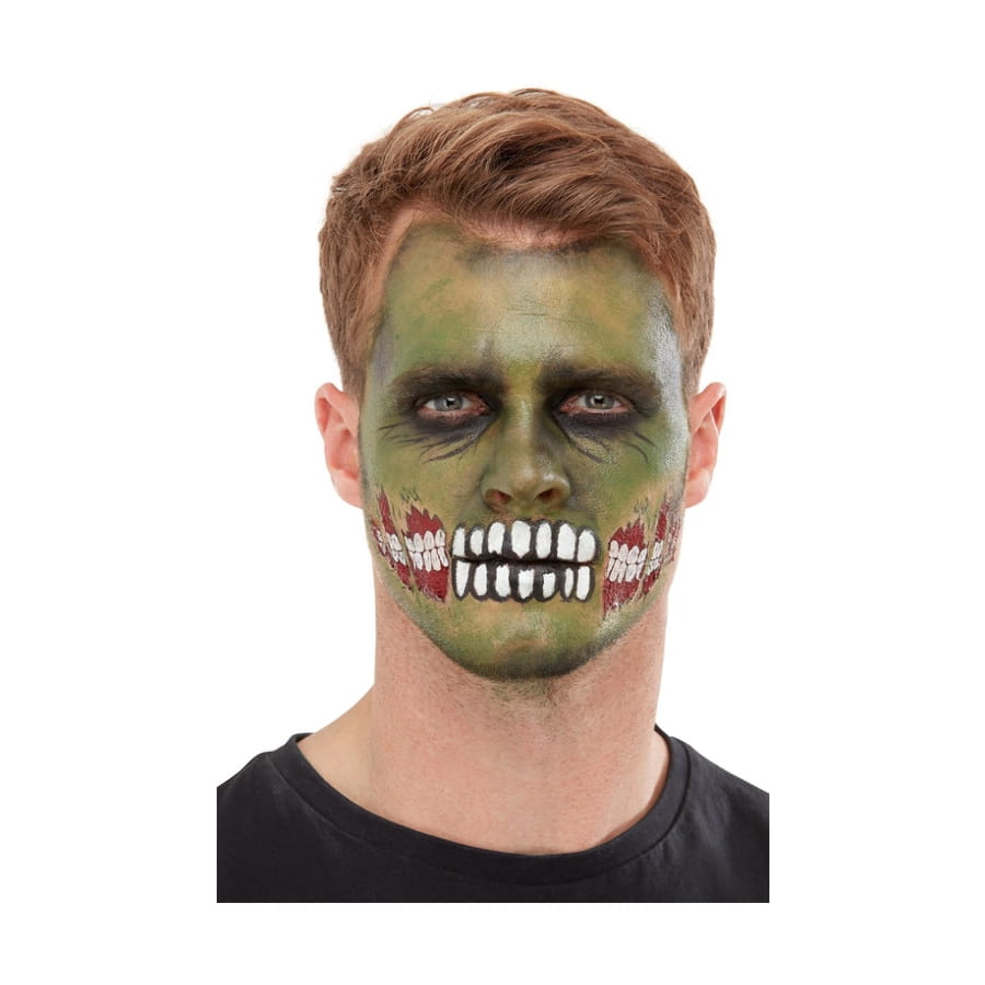 Avec la peinture verte pour visage incluse dans ce kit vous pourrez facilement vous transformer à un zombie effrayant.