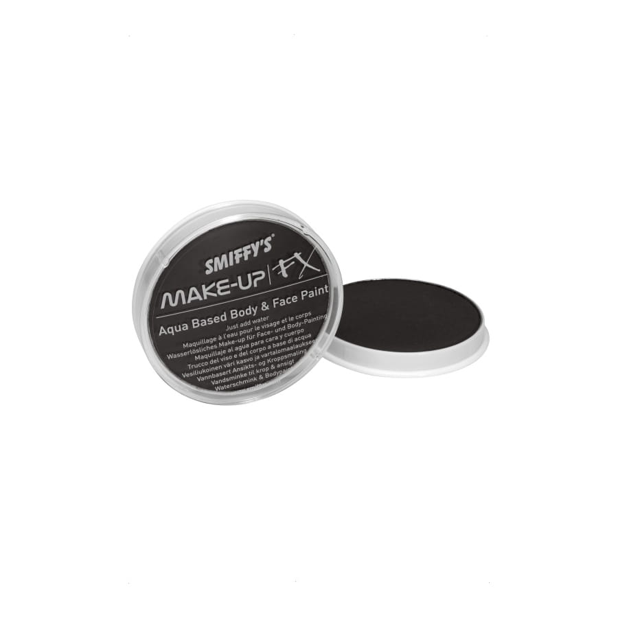AquaColor de couleur noire, pour le visage et pour le corps, de la marque Smiffy's. Le pot contient 16 millilitres de maquillage. Il sera idéal pour un déguisement d'Halloween.