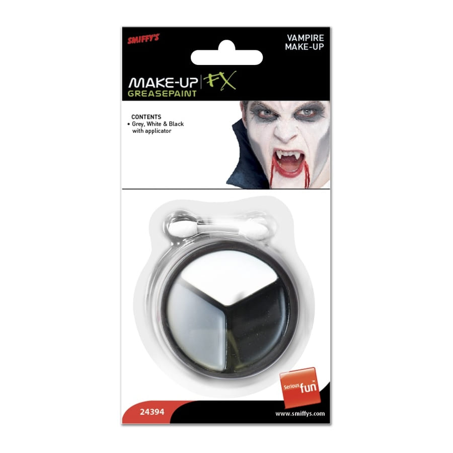 Maquillage de vampire de couleur grise, noire et blanche, pour homme ou femme, livrée avec applicateur. Avec ce set, vous aurez les couleurs parfaites pour les différentes teintes de maquillage et deviendrez un vampire très crédible.