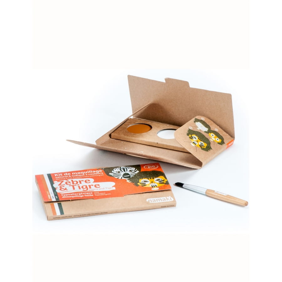 Vous pourrez réaliser facilement un make-up sur le thème des animaux de la jungle avec ce maquillage zèbre, tigre Bio Namaki Cosmetics.