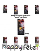 Le kit inclut 2 crayons, un fard, une éponge et du faux sang.