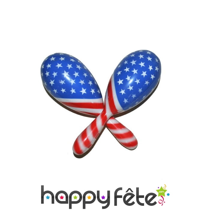 Ces Maracas aux couleurs des Etats Unis sont les accessoires idéaux pour mettre plus de peps à vos soirées ou lors des événements sportifs.