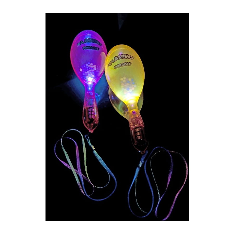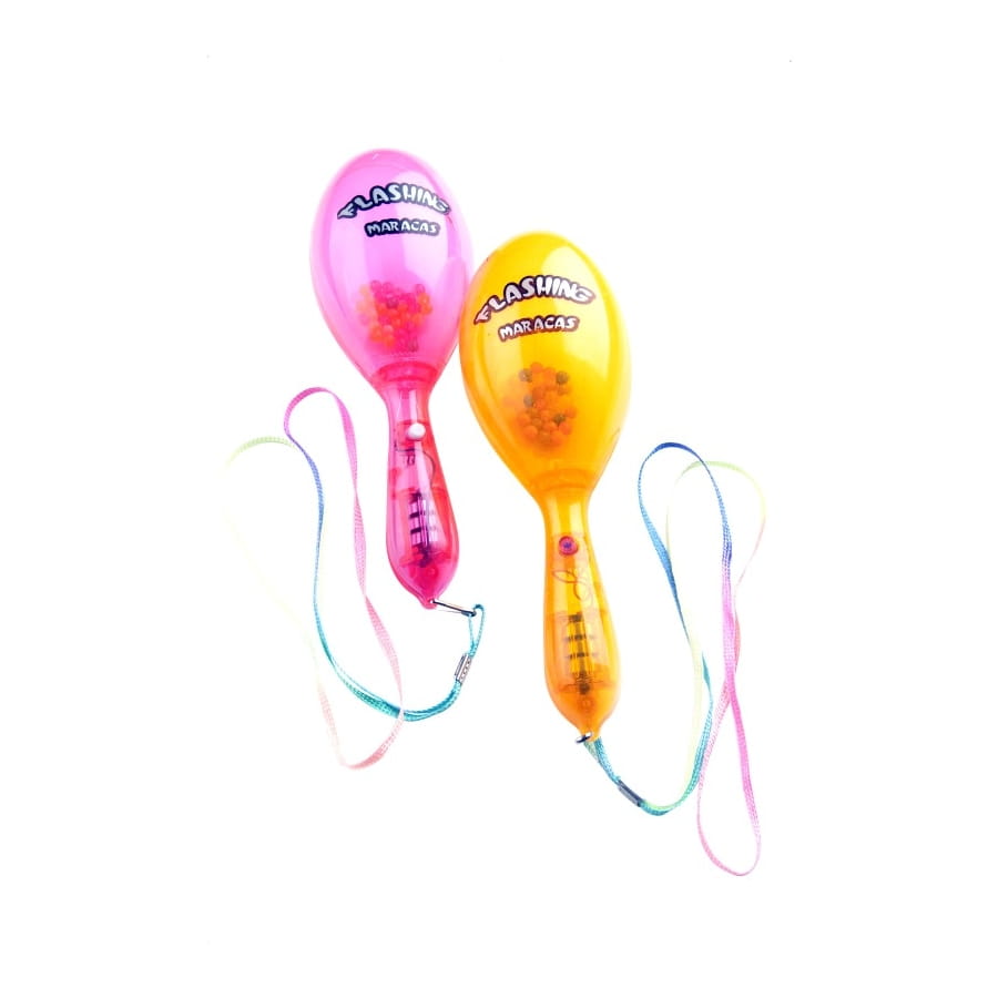 Paire de maracas transparentes et lumineuses de couleur rose et jaune, pour garçon ou fille. Ces jolies maracas permettront à vos enfants de créér une ambiance enjouée et musicale.
