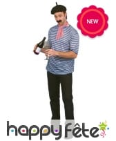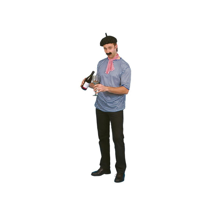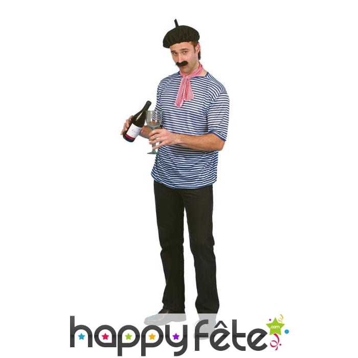 Revisitez l'essence de la culture française avec l'ensemble marinière, foulard, béret et moustache de paysan.