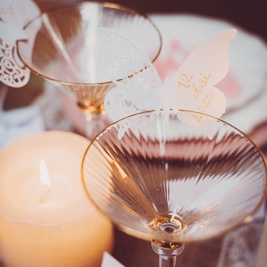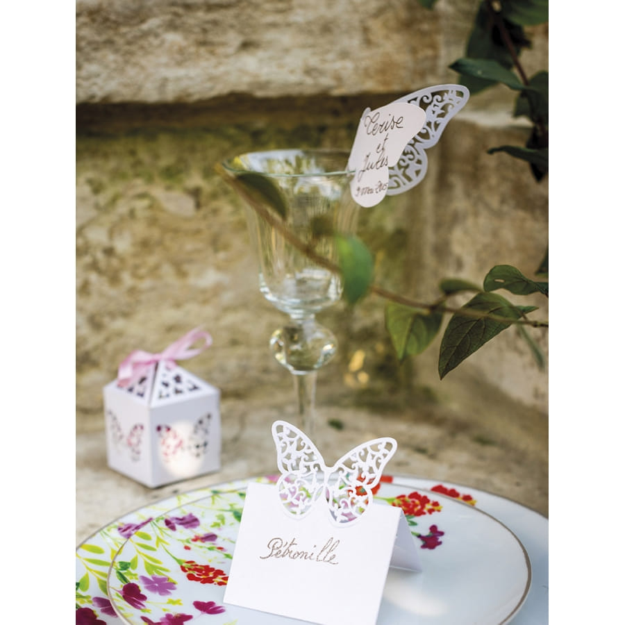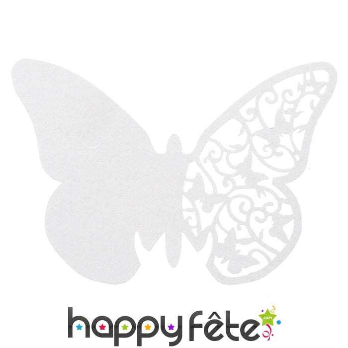 Imaginez une petite armée de papillons blancs délicats, prêts à guider vos invités à leurs sièges. Chaque marque-place mesure 10 x 6,5 cm, un format idéal pour y inscrire les noms de vos invités et pour décorer votre table. Lorsque vous regardez de plus près, vous remarquerez que chaque papillon dispose d'une aile pleine et une autre trouée comme de la dentelle. C'est cette attention aux détails qui fait la différence et donne à votre fête une touche d'originalité.