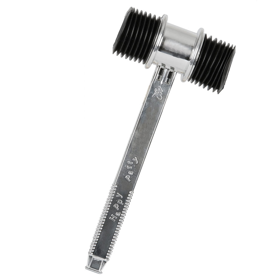 Faites d'un marteau sonore votre allié pour créer une atmosphère originale. Le soir du nouvel an ou à l'occasion d'une fête d'anniversaire, saisissez votre marteau couineur argenté et faites du bruit ! Ce modèle en plastique est de couleur argent et noir. Il fait environ 24 cm de long. Utilisez-le pour accompagner votre costume de clown ou de médecin un peu toqué.