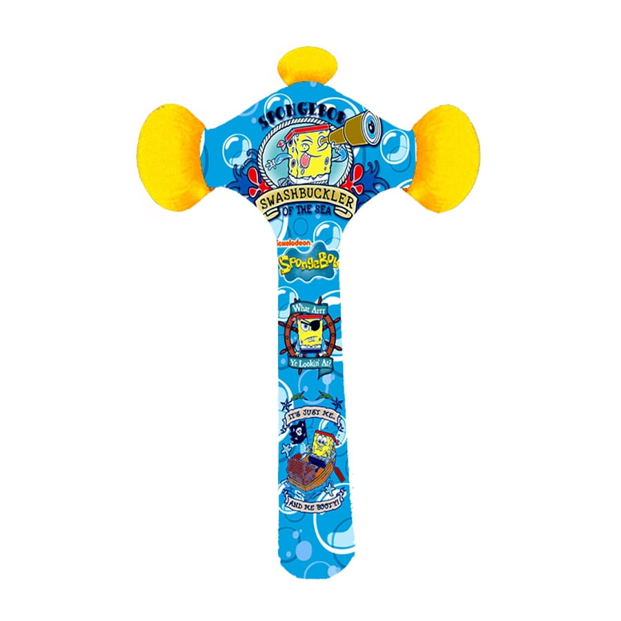 Oh chic alors, un marteau pour enfant! Comme ça, les enfants n'emprunteront plus le marteau de papa au risque de se blesser avec. Ce marteau est multicolore, avec surtout du jaune et du bleu, illustré de plein de dessins de Bob l'Eponge, un des dessins-animés favoris des enfants actuellement, il est d'ailleurs sous licence Bob l'Eponge. Il mesure 50 cm de long.