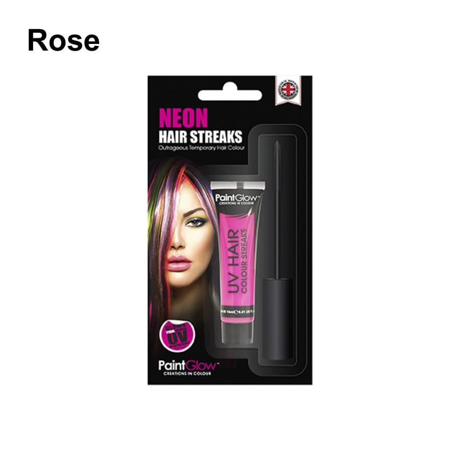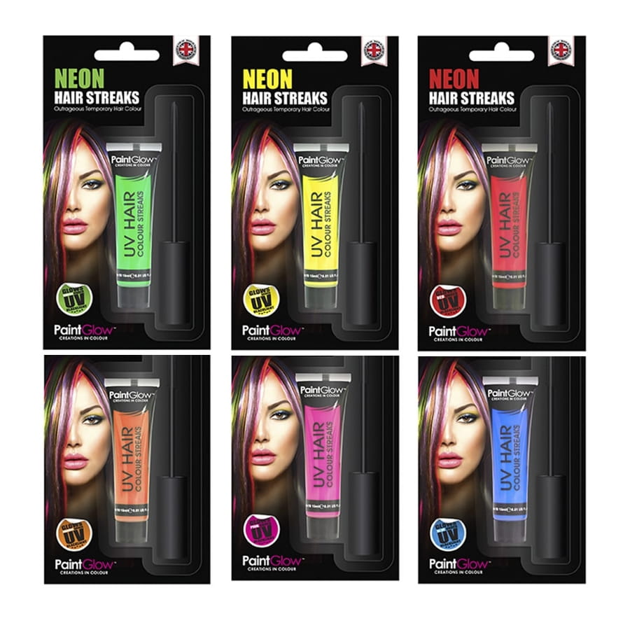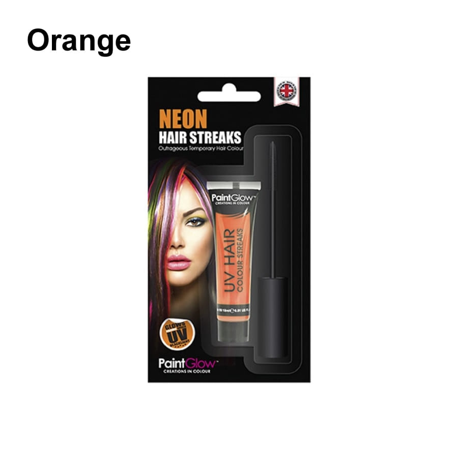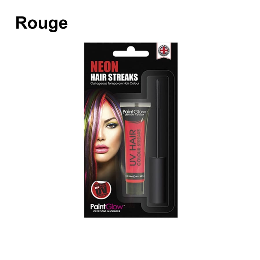 Pour colorer vos cheveux de manière temporaire lors d'une soirée Halloween ou autre, l'article Mascara fluo pour cheveux UV vous permettra de maquiller vos cheveux avec les couleurs suivantes : jaune, vert, bleu, rose, orange et rouge. Ce mascara destiné aux adultes est offert en tube de 15 ml sous blister. Il réagit aux UV et n'émet pas sa propre lumière.