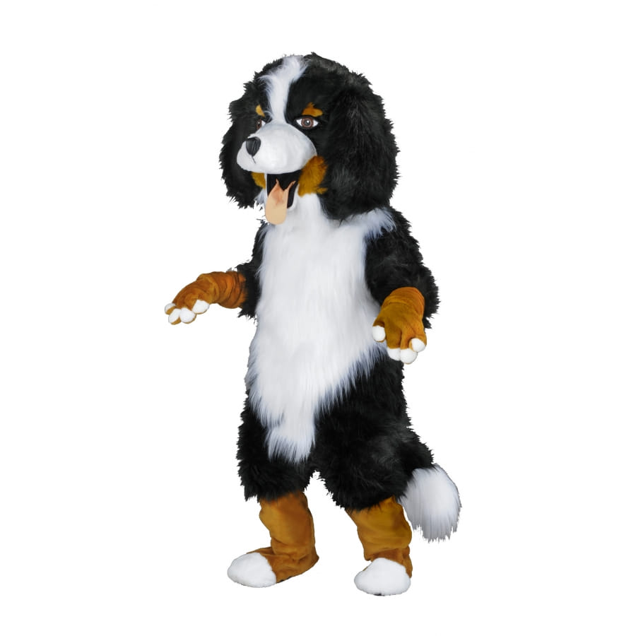 Déguisement mascotte de chien bouvier-bernois, ici présenté en noir et marron, il est possible de modifier les couleurs (sur demande). Ce déguisement est composé de tous les éléments présentés en photo (la grosse tête, le corps poilu, les gants et sur-chaussures en forme de pattes). Qualité professionnelle des éléments qui le compose,aAucune matière rigide n'est utilisée dans la fabrication. Les éléments sont difficilement inflammables et respecte les normes de sécurité Européennes. Pour l'entretient, ne pas dépasser les 30 degrés en machine. Livraison variant de 1 à 3 semaines. Totalement fabriqué en France. Taille correspondant à une hauteur de 1.6 à 1.9 m