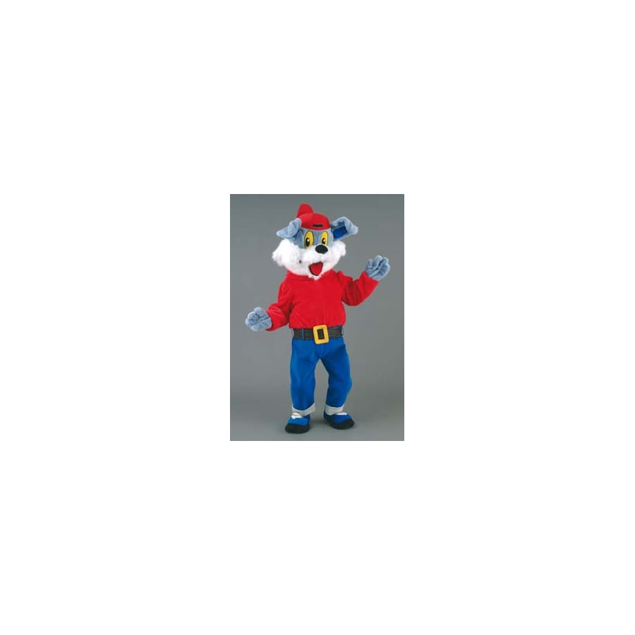Costume mascotte chien de taille unique (1m60 à 1m90). La mascotte est habillé d'un pantalon bleu, un t-shirt à manche longue rouge et une casquette rouge. Le costume peluche est fourni avec corps, tête, gants et sur-chaussures. Il respecte les normes CE de sécurité et est difficilement inflammable. Pour un meilleur entretien, nous vous conseillons de le laver et le sécher en machine à 30°C max. Belle qualité, confortable et construit sans éléments durs. Idéal pour des évènements sportifs ou des animations. Personnalisation sur demande de devis.