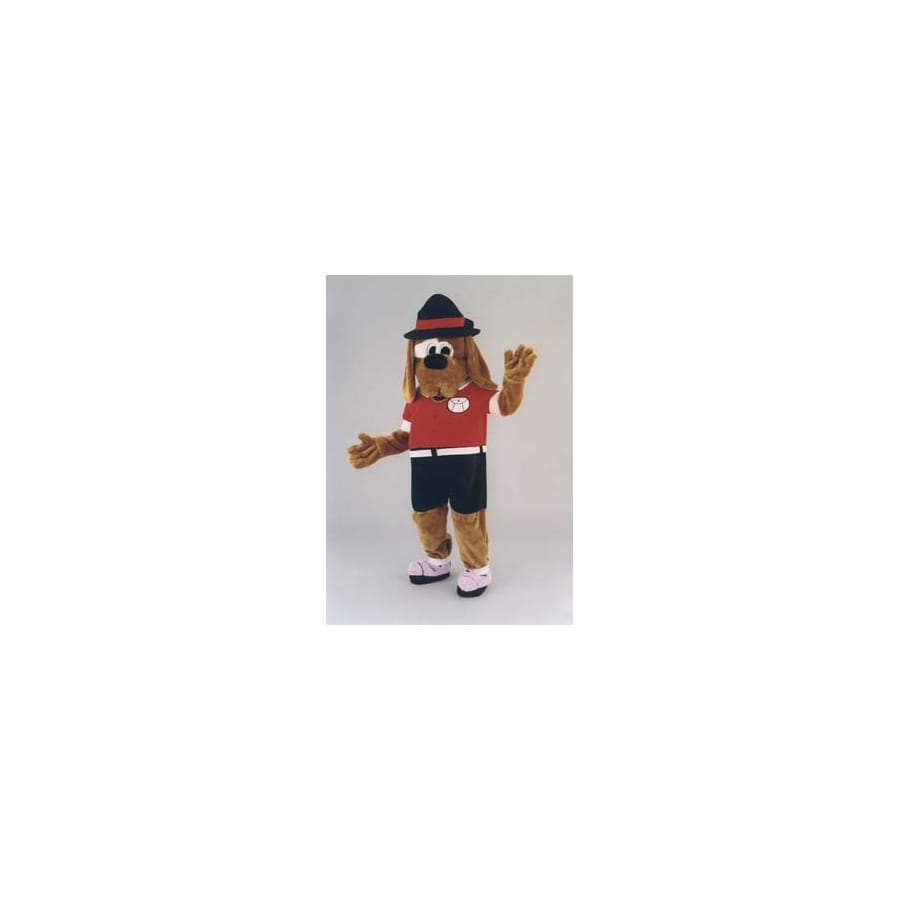 Mascotte de chien sportif habillé d'un short noir, un t-shirt rouge et un chapeau noir et rouge. La mascotte est de très bonne qualité, confortable et construite sans éléments durs. Elle est composé du corps, gants, tête et sur-chaussures. Elle est personnalisable sur demande de devis (marquage logo, modification de couleur, etc.). Fabriquée en France, cet article répond aux exigences européennes en terme de sécurité (difficilement inflammable, etc.)