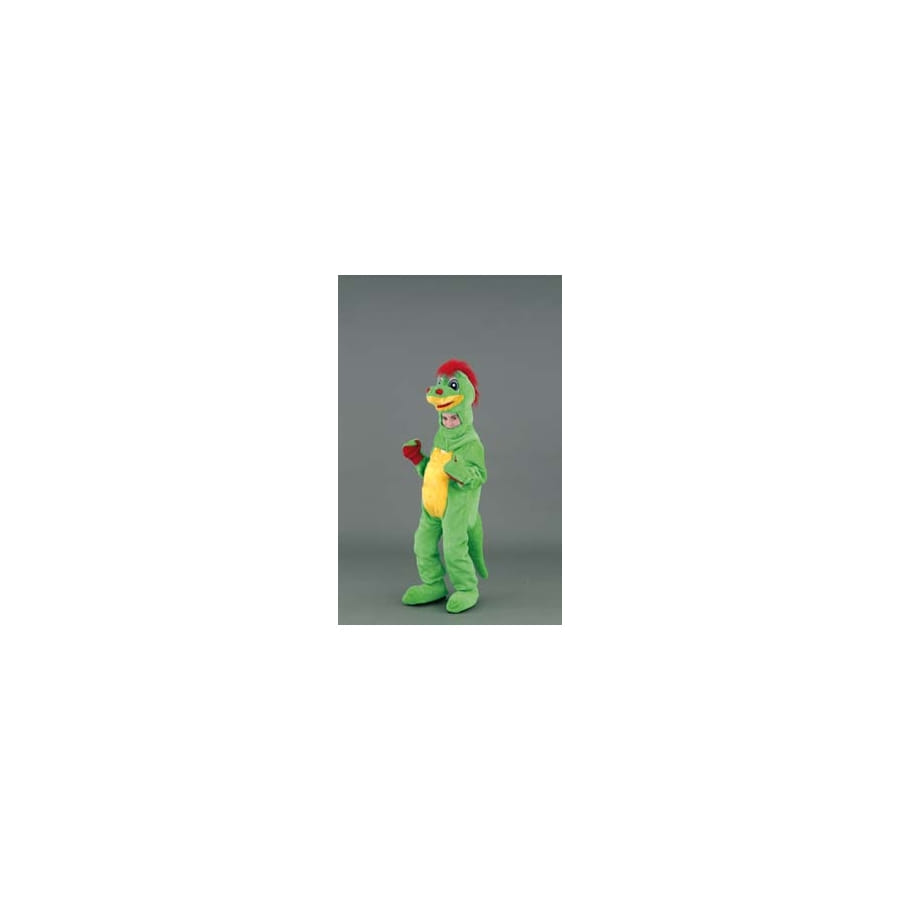 Déguisement mascotte de dinosaure vert, ici représenté avec du rouge et jaune mais une personnalisation sur demande de devis est possible (marquage de logo, changement de couleur,... ). Il est donc idéal à porter pour des évènements sportifs ou autres animations. De taille unique, il conviendra aux enfants de taille moyenne. Comptez 1 à 3 semaines de fabrication pour ce produit. A titre d'information, ce déguisement est entièrement conçu et fabriqué en France. Le tissu est difficilement inflammable et respecte les normes CE de sécurité. Ce costume est très confortable et construit avec des éléments mous. Pour un meilleur entretien nous vous conseillons un lavage et un séchage à 30°C max.