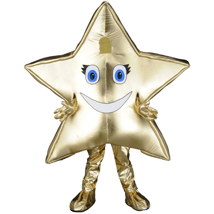 Ce déguisement de mascotte est composé du corps en étoile avec un emplacement prévu pour la tête, des gants de couleur dorés, du pantalon ainsi que des sur-bottes (chaussures à mettre au dessus de chaussures traditionnelles). La taille est unique mais convient à presque tout les adultes allant de 1m60 à 1m90. La couleur du déguisement ainsi que des yeux bleus sont personnalisables et il est également possible d'y imprimer votre logo (pour se faire, contactez nous via le formulaire de contact ou par téléphone). Ce déguisement est fabriqué en France et il faudra compter de 1 à 3 semaines pour sa fabrication et son expédition. Il est entièrement composé d'éléments mous tout en respectant les normes de sécurité européenne. Ce déguisement est lavable en machine mais il est souhaitable de ne pas dépasser les 30° maximum également pour le séchage.