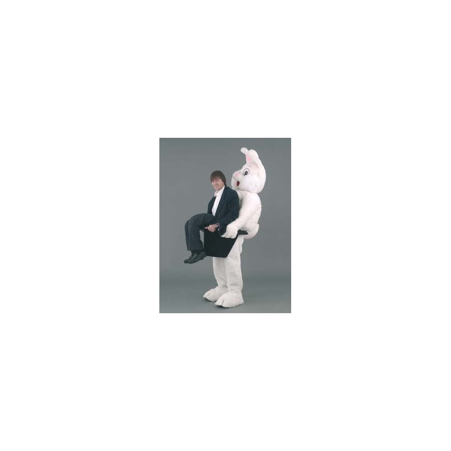 Ce déguisement de mascotte est composé des gants, des sur-chaussures (chaussures à mettre au dessus de chaussures traditionnelles), du corps et de la grosse tête de lapin blanc mais également du chapeau et des jambes de magicien pour un effet d'optique plus vrai que vrai.
