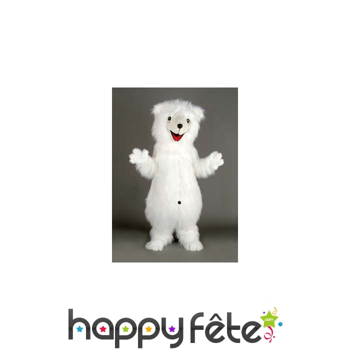 Ce déguisement de mascotte est composé de gants et de sur-chaussures en forme de pattes d'ours (chaussures à mettre au dessus de chaussures traditionnelles), du corps et de la grosse tête. Ce déguisement est de taille unique mais elle convient aux personnes mesurant de 1m60 à 1m90.