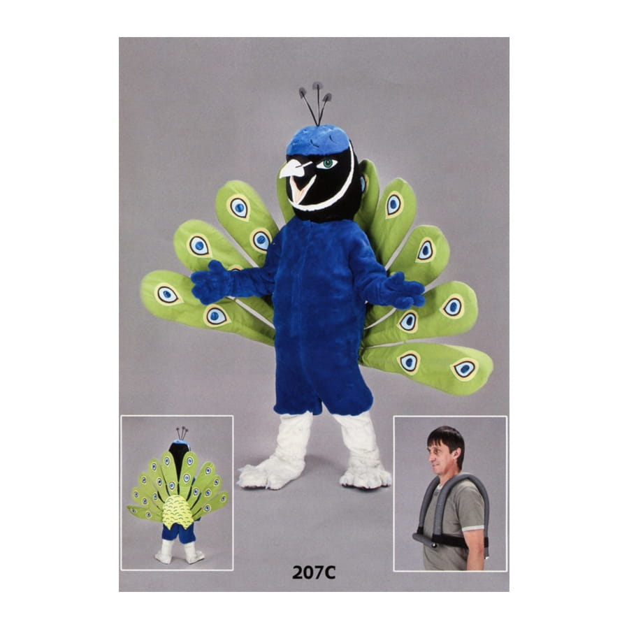 Déguisement de mascotte paon à plumes. Contient la grosse tête, le corps, les gants 4 doigts et les sur-bottes en forme de pattes. Le systèmes pour maintenir les plumes est également compris. Pour l'entretient et le lavage, nous vous conseillons de ne pas dépasser les 30 degrés. Entièrement fait en France, cet ensemble est uniquement composé d'éléments mous (normes CE). Si vous souhaitez modifier l'aspect du déguisement (que ce soit la couleur, l'impression d'un logo, etc.) sachez que cela reste possible. Il vous suffit de nous envoyer une demande par e-mail ou de nous téléphoner. Pour la fabrication et la livraison, comptez 3 semaines maximum. La taille correspond à une morphologie de 1.6 à 1.9 m