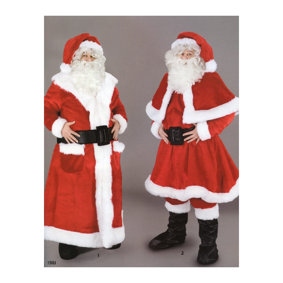 La photo présente deux déguisement mais cette fiche produit ne concerne que le déguisement de droite. Le déguisement manteau de père noël est composé de la petite veste, de la robe à ceinture noire ainsi que du pantalon en velours rouge et blanc. Déguisement de qualité professionnelle qu'il vous est possible d'accessoiriser avec d'autres produits disponibles sur le site.