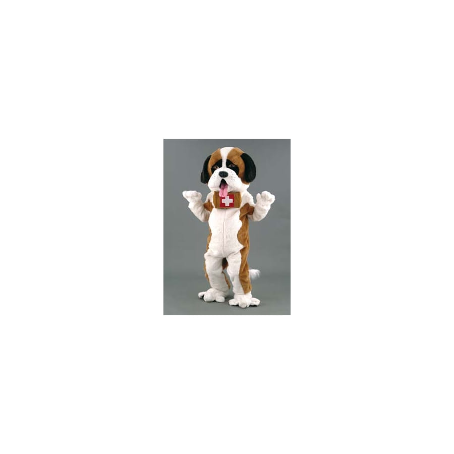 Ce déguisement de mascotte saint-bernard est composé des gants, des sur-chaussures en formes de pattes (chaussures à mettre au dessus de chaussures traditionnelles), du corps avec tonneau au cou et de la grosse tête de chien. Ce déguisement est de taille unique mais elle convient aux personnes mesurant de 1m60 à 1m90.