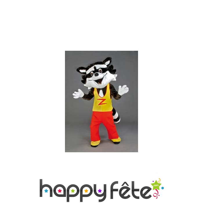 Déguisez vous en mascotte de raton laveur. La mascotte est habillé d'un pantalon orange, un singlet jaune et de sur chaussures jaune.La mascotte est de très bonne qualité, confortable et construite sans éléments durs. Elle est personnalisable sur demande de devis (marquage logo, modification de couleur, etc.). Fabriquée en France, cet article répond aux exigences européennes en terme de sécurité (difficilement inflammable, etc.)