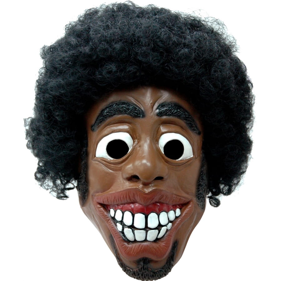 Masque souple, pour homme, représentant un personnage "Afro Disco", avec une touffe de cheveux crépus de couleur noir. Ce masque sera parfait si vous souhaitez changer complètement de look et adopter celui d'un afro pour une fête déguisée.