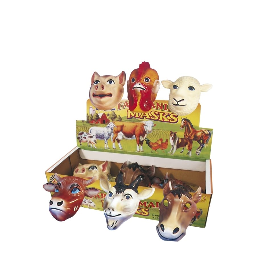 Boîte contenant 36 masques de différents animaux de la ferme, pour garçon ou fille. Distribuez ces masques aux enfants lors d'un anniversaire pour qu'ils puissent s'amuser à se déguiser en animal de ferme!