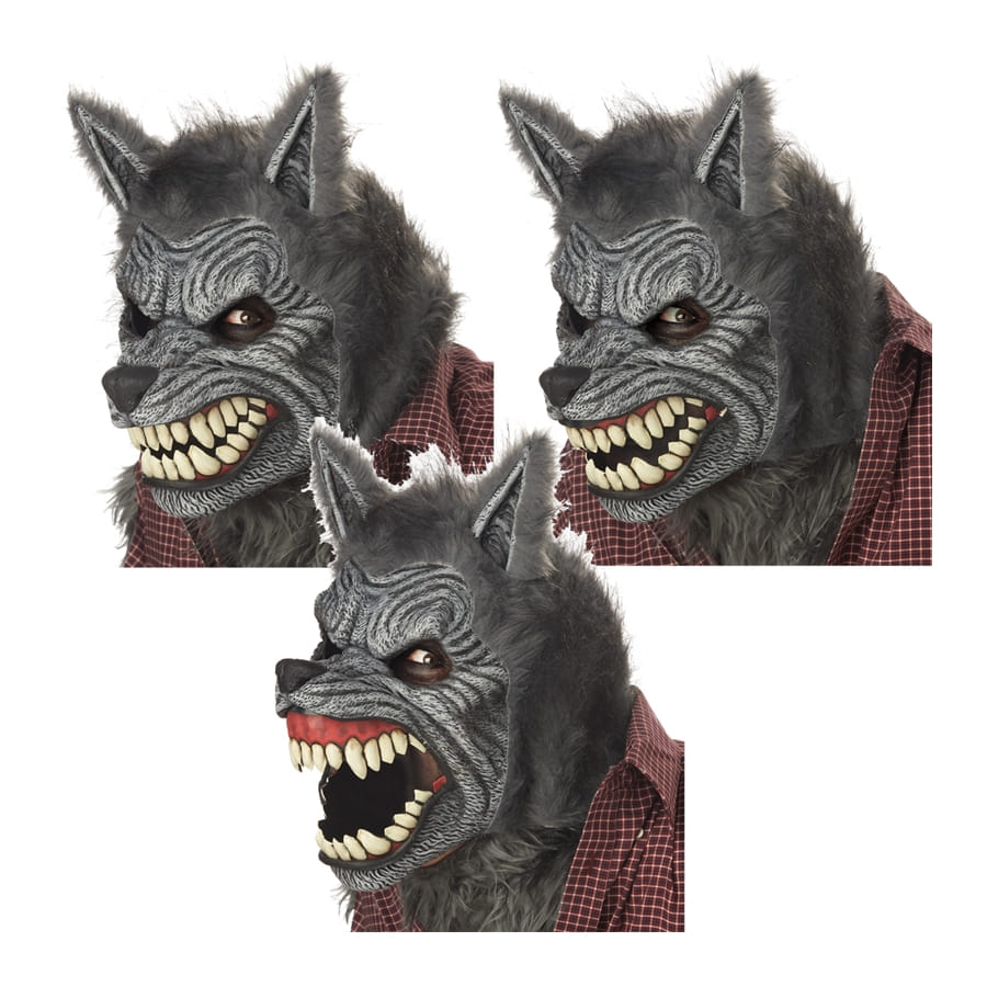 Lorsque vous voulez porter des masques, il n'y a rien de mieux que les masques complets, c'est-à dire ceux qui recouvrent toute la tête. Ce masque articulé de loup-garou en fait partie et se porte très facilement. Il est entièrement de couleur grise et dont les dents sont blanches. Il a été fait en latex et est de taille adulte, pour homme.