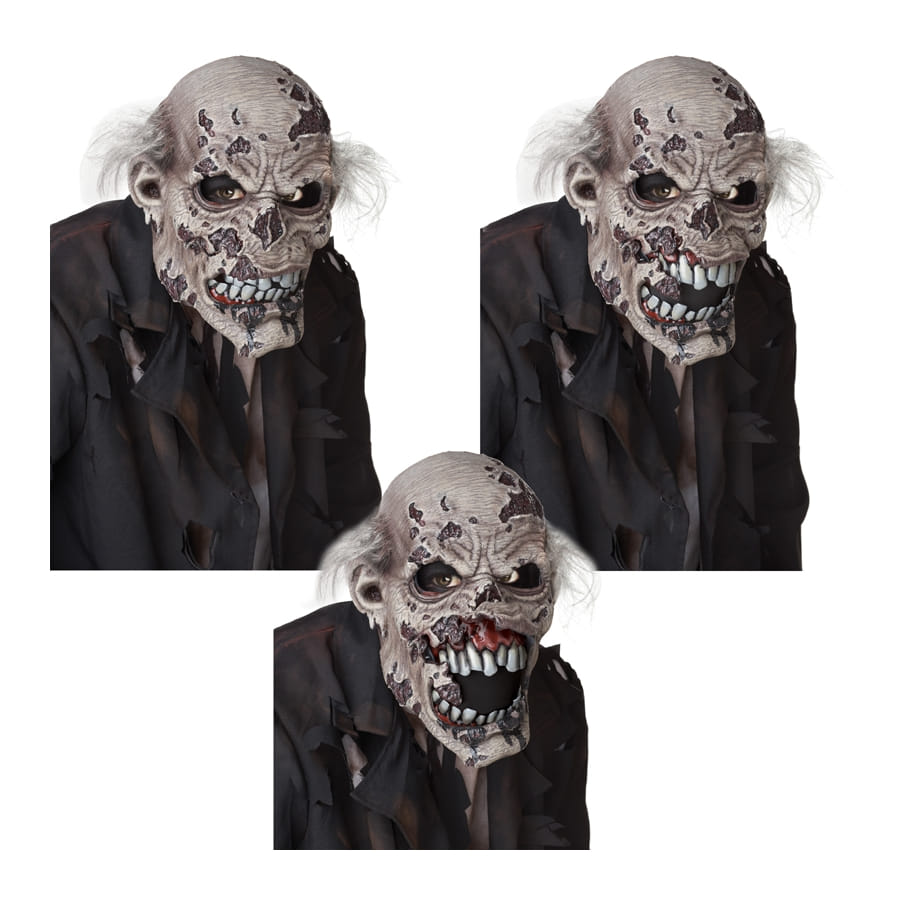 Effrayant ! Ce masque en latex est de couleur grise, de taille adulte. Il montre une tête de vieux zombie avec un visage abîmé, des énormes dents, et quelques cheveux gris sur les deux côtés de la tête pour un effet plus réaliste. Il recouvrira à merveille l'intégralité de votre crâne. Quoi de mieux pour célébrer Halloween ou pour participer à la marche des zombies ?