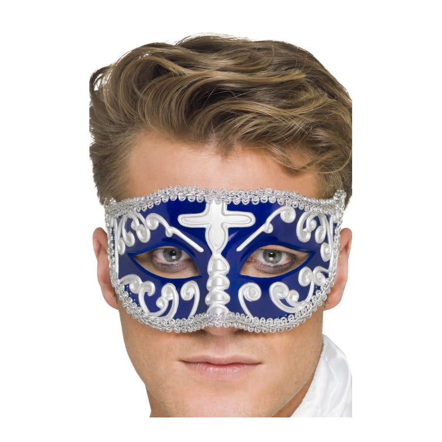Jouez au séducteur né avec ce superbe masque bleu aux détails blancs pour homme. Il accentuera vos yeux, tout en laissant votre bouche à découvert. Cela vous donnera un air mystérieux qui plaira sans nul doute aux demoiselles.