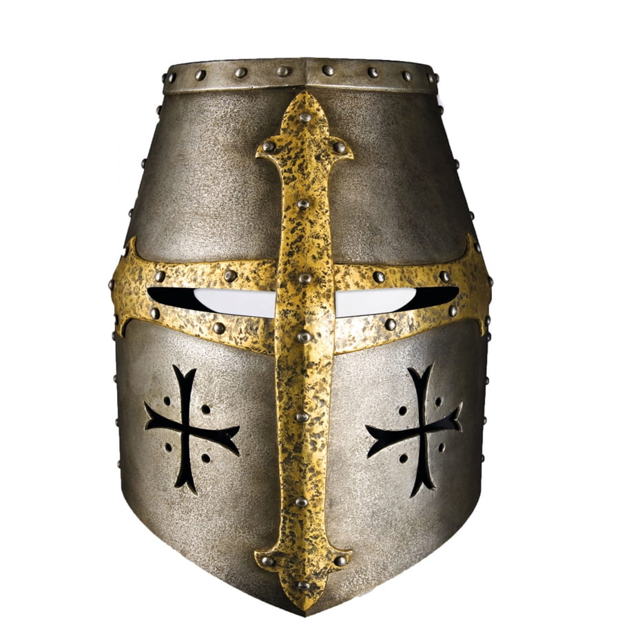 Vous serez un vrai chevalier pendant un carnaval ou une soirée costumée sur le thème du Moyen-Âge avec ce masque casque de chevalier croisé en carton pour adulte.