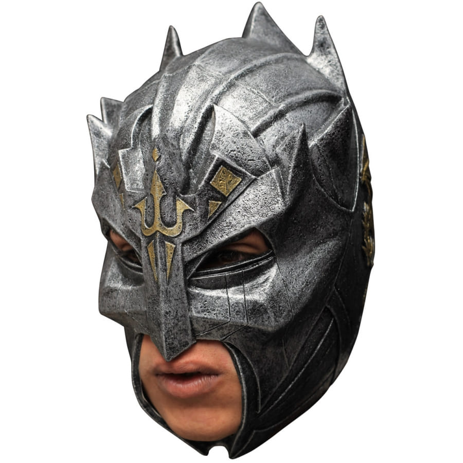il est réalisé en latex et possède un trident sur le front avec des motifs de couleur or.