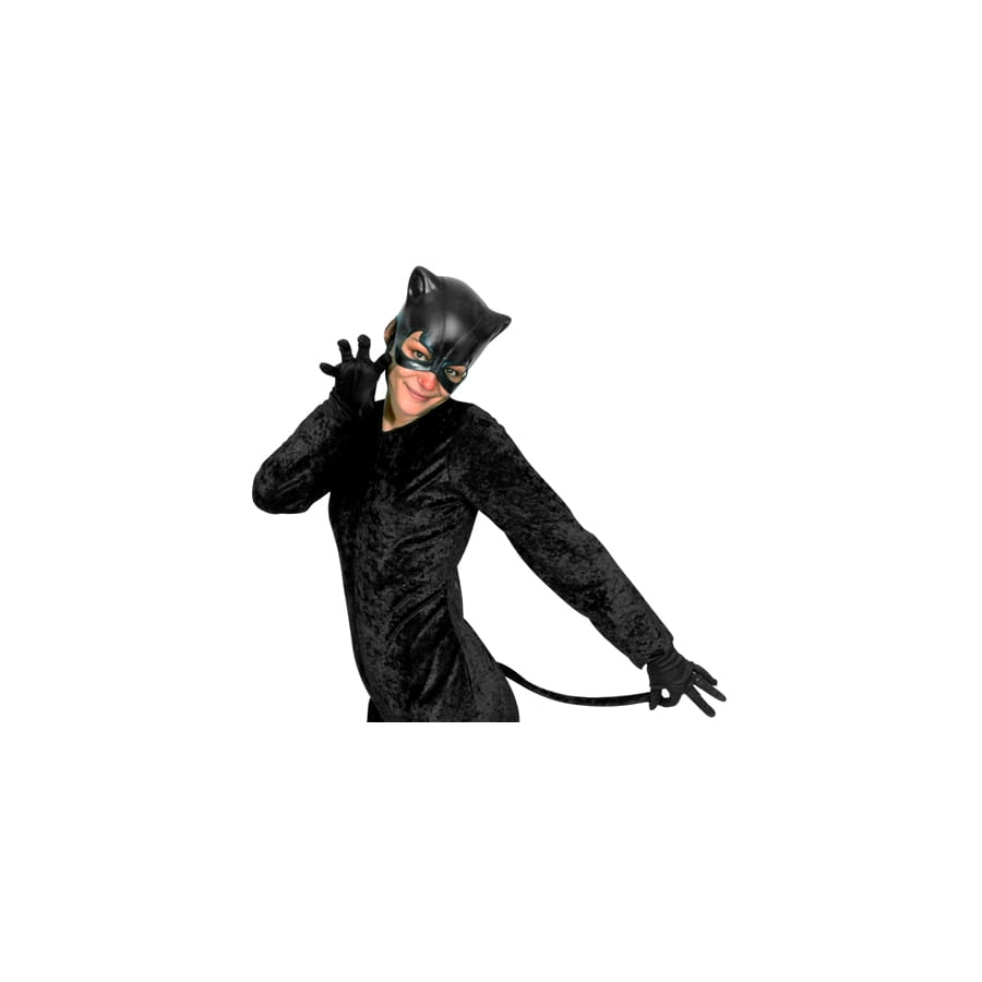 Vivez les fascinantes aventures de Catwoman à travers son masque ! Nous vous suggérons un masque en polychlorure de vinyle, sous licence Catwoman. Il est de couleur noire, et est très ressemblant au vrai masque de cette héroïne. Vous aurez un déguisement parfait avec une combinaison noire bien moulante, accompagnée de bottes ou de talons hauts, à porter impérativement lors du prochain carnaval.