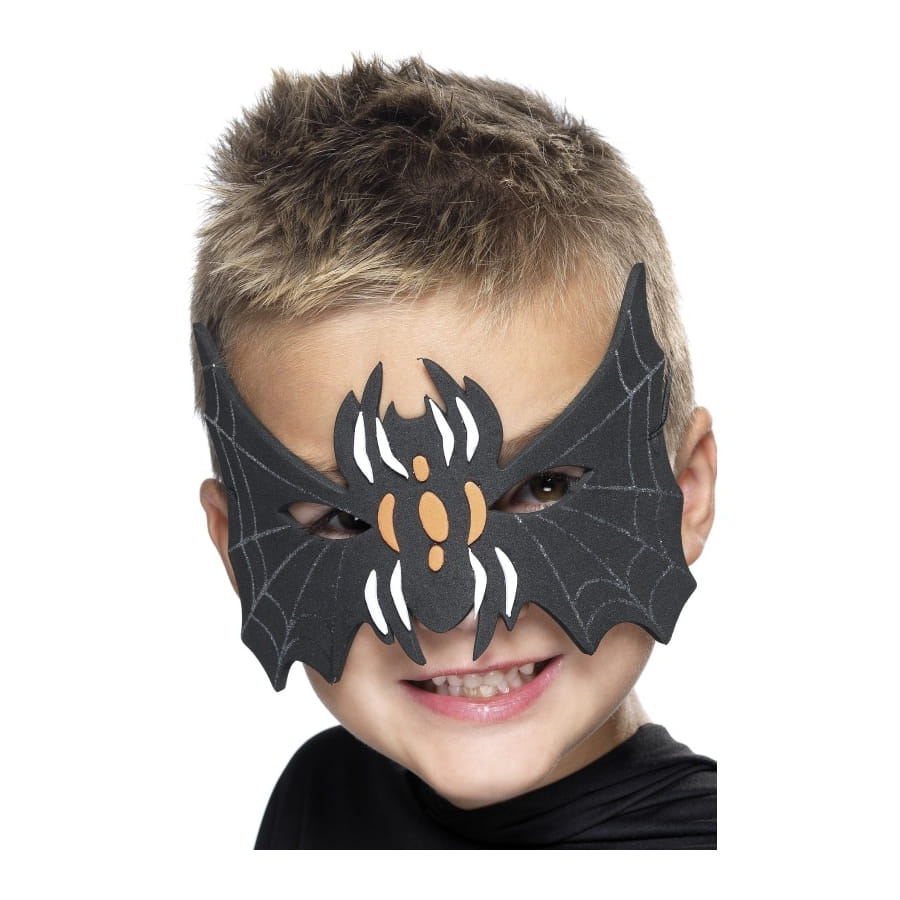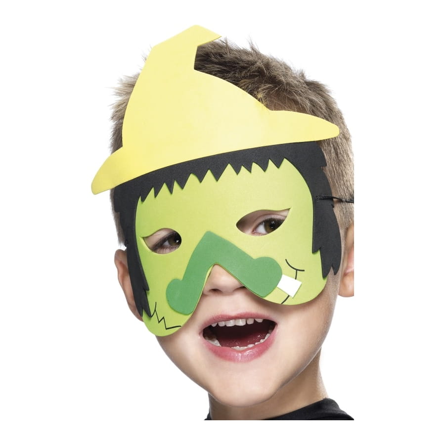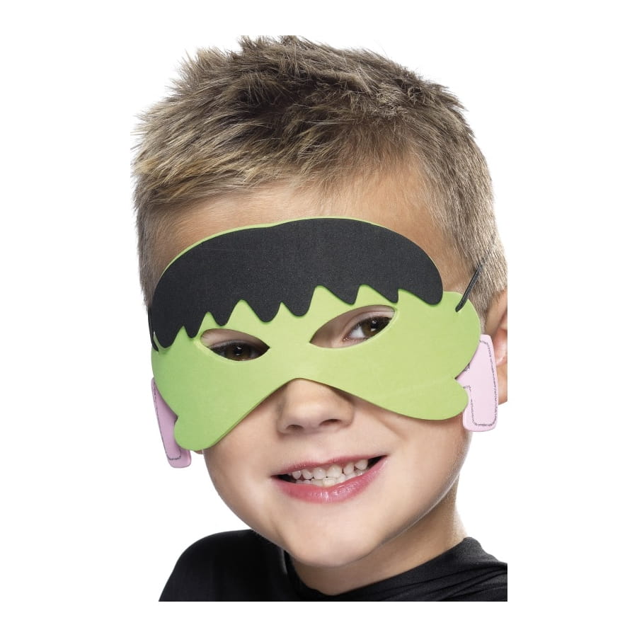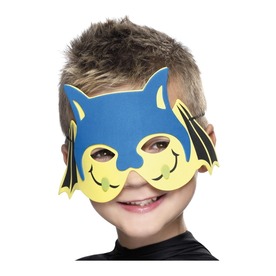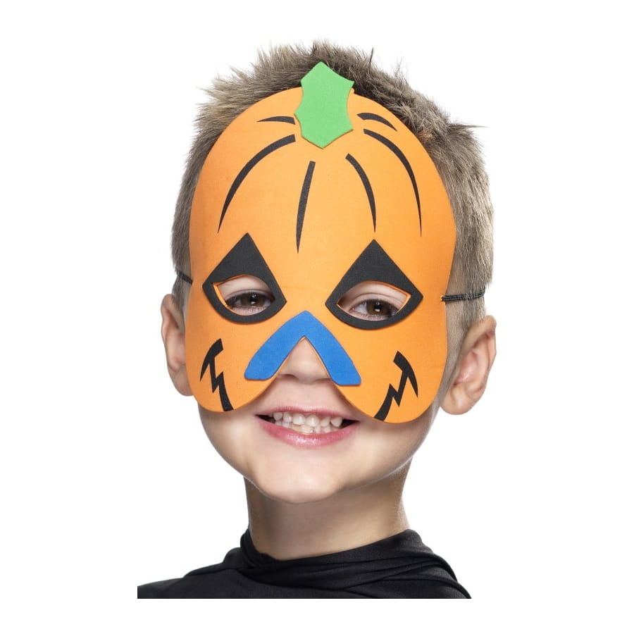 Masque de citrouille de couleur orange, avec imprimés bleus, verts et noirs, pour enfant. Ce masque comporte un élastique pour que votre enfant puisse l'enfiler et le maintenir en place. Combinez-le au déguisement d'Halloween de votre enfant!