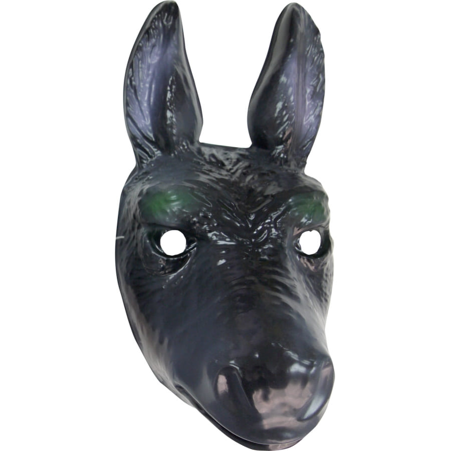 Masque âne pour adulte entièrement fabriqué en plastique de couleur noire représentant la tête de l'animal. Idéal pour un déguisement rigolo, une fête, une manifestation, etc.