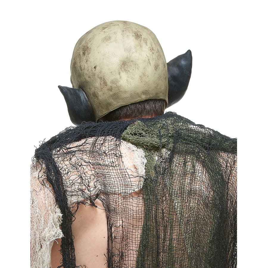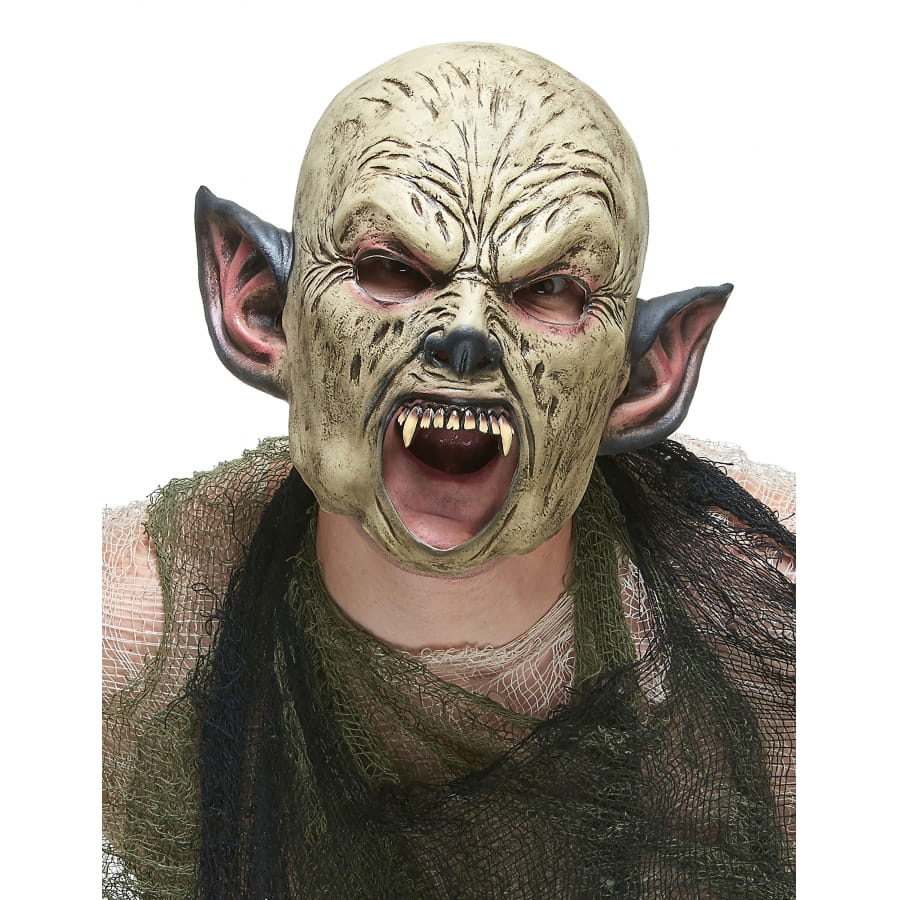 Le masque représente le visage vert d'un orc avec ses oreilles proéminentes et la partie supérieure de la denture exposée.
