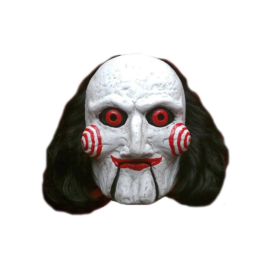 A l'occasion de la fête d'Halloween, incarnez le fameux tueur monstrueux Billy Puppet, du film "SAW", pour terrifier les grands et les petits, à l'aide de ce masque ultra réaliste. Il vous couvrira toute la tête. Pour donner un effet plus réaliste, ce masque est déjà muni de cheveux noirs. Ce visage blanc et ces yeux rouges ne passeront pas sans terroriser quelqu'un. Notez qu'il est de taille adulte, spécialement conçu pour la gente masculine.