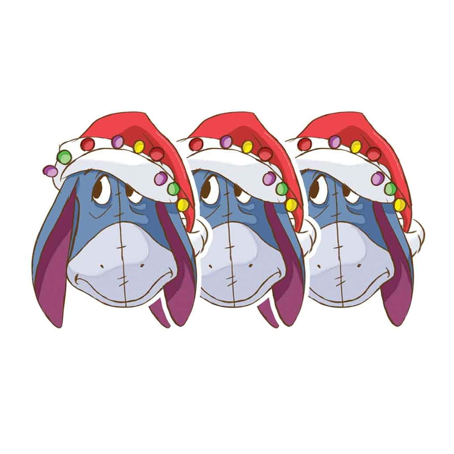 Vous connaissez l'âne bleu si pessimiste qui ne sourit que quand on se souvient de son anniversaire ? C'est Bourriquet de Walt Disney ! Et cet anniversaire, vous le connaissez ? C'est le 25 Décembre, oui, le jour de Noël ! C'est pourquoi on a fait ce masque sous licence officielle, qui imite le visage triste de Bourriquet avec un chapeau de Père noël. Celui-ci est disponible pour toute la famille, les grands comme les petits. Il est fait en carton plat et couvre l'avant du visage, avec une dimension de 30 cm x 23.5 cm. Vous et votre famille pourrez revire les meilleures aventures de Bourriquet et ses fidèles amis dans la Forêt des Rêves Bleus pendant le réveillon de Noël, mais pour cela, n'oubliez pas ce masque !