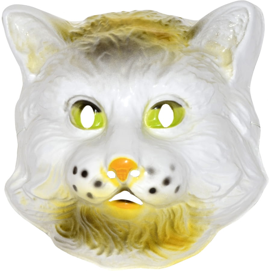 Masque en plastique pour garçons et filles, représentant un chat de couleur blanche, jaune et noire. Cet accessoire permettra à votre enfant de se déguiser en son animal préféré et de faire la fête avec tous ses camarades!