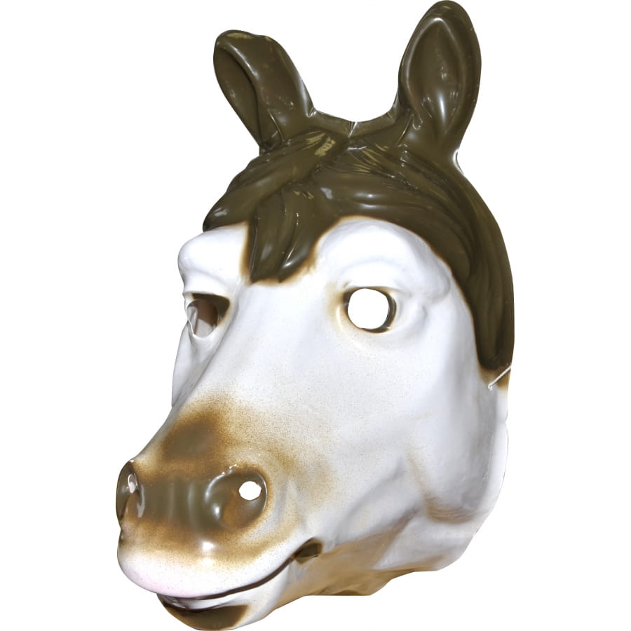 Pour que votre enfant incarne son animal favori, ce masque de la tête d'un cheval. En plastique rigide, sa crinière est marron et son visage blanc avec quelques petites taches marron sur le visage. Il y a quatre ouvertures deux pour les yeux et deux petites pour les narines. Il ou elle pourra le porter pour un anniversaire avec comme thème animaux.