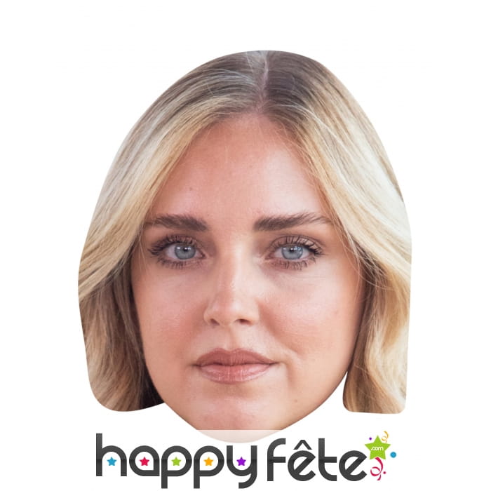 Il est question ici d'un masque plat fabriqué à base de carton et qui représente avec photoréalisme le visage de la blogueuse Chiara Ferragni.