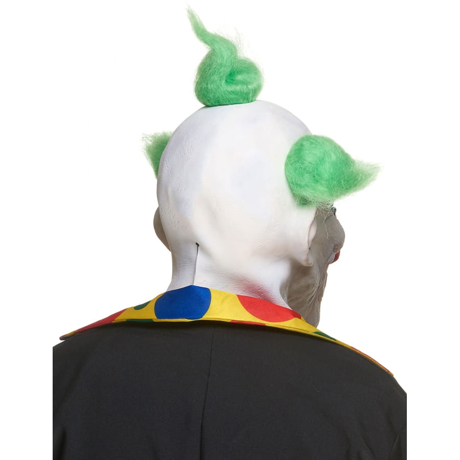 Nous décrivons ici un masque de clown fou avec cheveux verts.