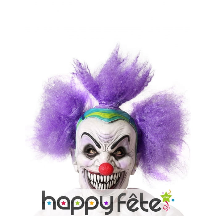 Finalisez un costume sinistre d'Halloween en arborant le masque de clown fou avec cheveux violet, adulte.