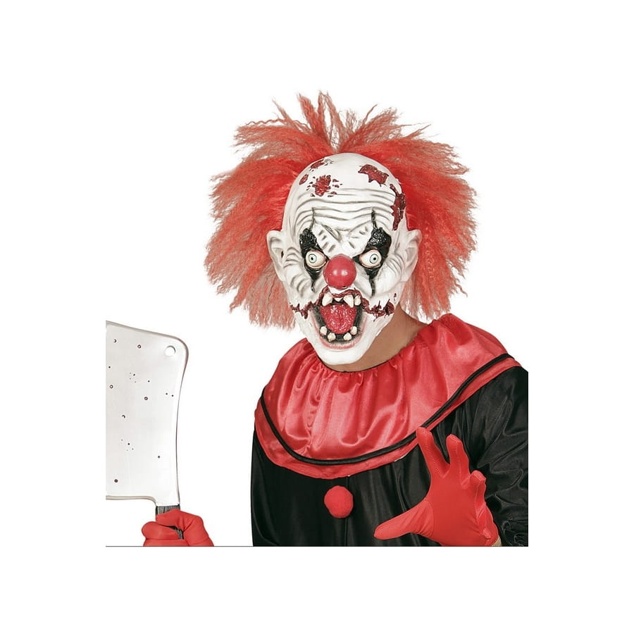 Le masque de clown horrible avec cheveux rouges pour homme est en latex.