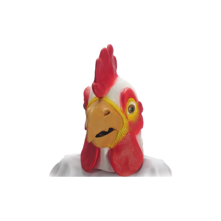 Masque pour homme ou femme, représentant une tête de coq complète de couleur blanche, jaune, rouge et orange. Cet accessoire vous permettra de compléter un déguisement inspiré d'un thème basé sur les animaux, pour un carnaval ou une fête entre amis.