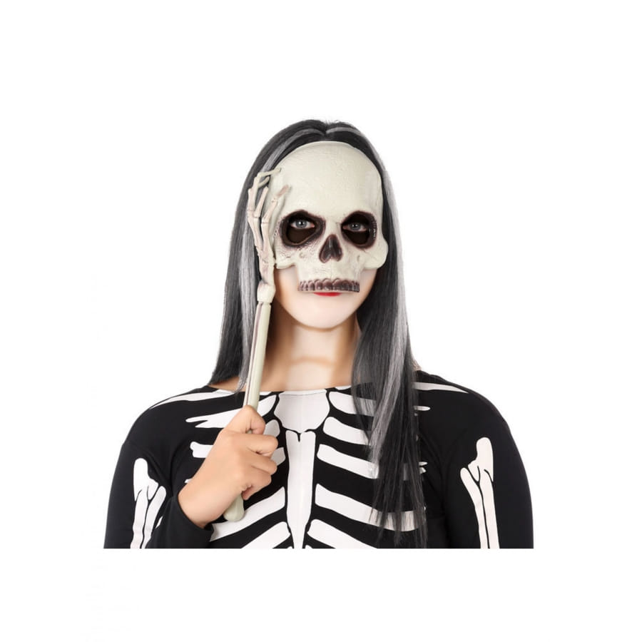 Le masque de crâne avec main de squelette sur manche est destiné aux adultes.