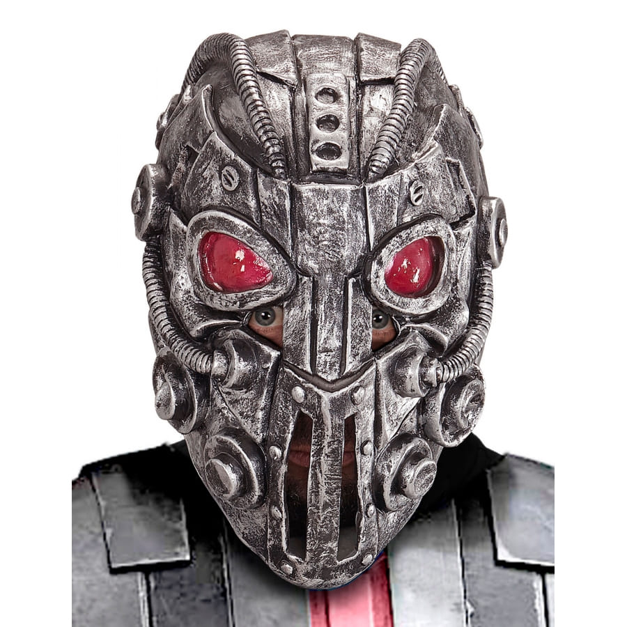 Pour votre déguisement de créature mi-homme mi-robot, devenez encore plus dangereux en portant ce masque de cyborg aux yeux rouges intégral pour adulte.