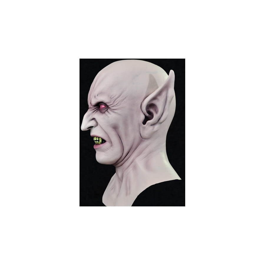 Voici un masque de démon vampire, très bien réalisé, dédié aux hommes. Il est en latex, de couleur beige. C'est un masque complet, c'est à dire qu'il couvre totalement la tête. Un démon ou un vampire, ce sont tous des créatures maléfiques qui terrorisent les humains, et tout le monde veut les incarner à l'occasion des soirées Horreur, particulièrement à Halloween, pour se faire plaisir et effrayer les gens. Mais avec ce masque, vous aurez la chance d'être à la fois les deux : un démon vampire. Vampire, car vous possèderez les dents acérées d'un vrai suceur de sang, et démon, car vos yeux seront tous rouges, vos oreilles seront très longues, votre visage sera très affreux, tout comme un vrai démon. Pour avoir tout ça, il ne vous faut que ce masque, alors, qu'attendez-vous ?